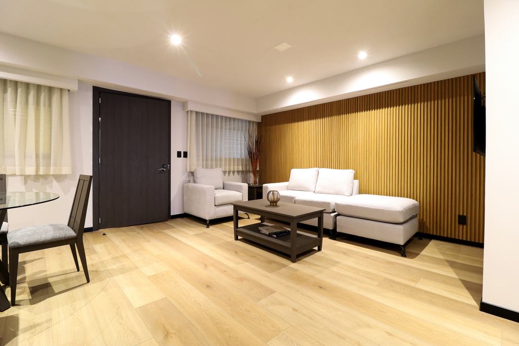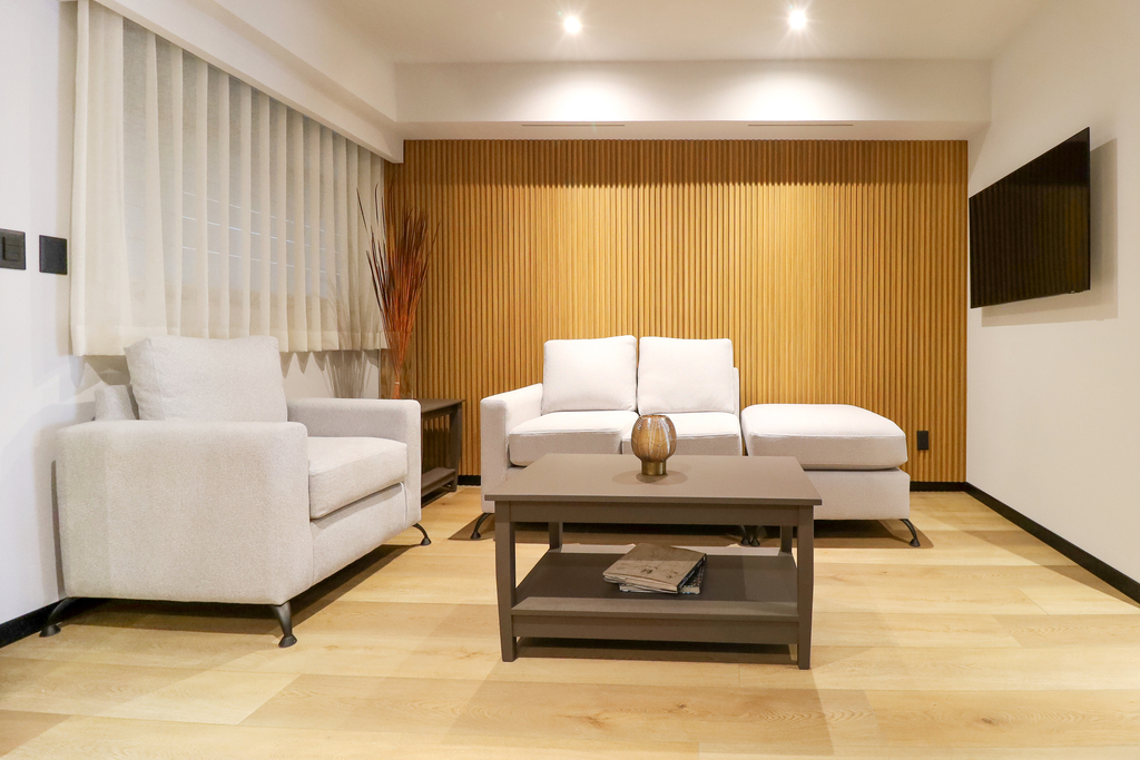 Descubre un espacio multifuncional diseñado para tu comodidad y productividad. Con una lujosa Cama King size, un baño completo, una acogedora sala de estar, un área de comedor y una cocina totalmente equipada, nuestra suite ejecutiva es el refugio ideal para tus viajes. Además, cuenta con un estudio adicional con sofá cama, proporcionando flexibilidad para tu estancia Además en todas las categorías de suite ofrecemos comodidades de primera como aire acondicionado y una televisión de 50 pulgadas con canales en 7 idiomas